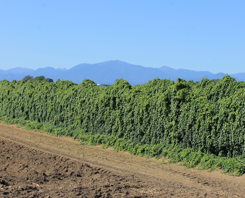 トヨニシファームの向かい側にはナガイモ畑。葉がこんもりと茂っています。