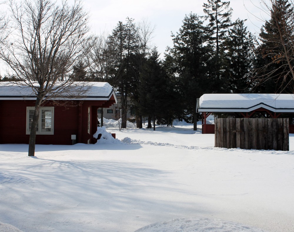 牧場の事務所の南側にある中庭にも真っ白の雪が積もりました。