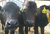 良質な粗飼料(地元産の牧草、自家産の麦わらやデントコーンサイレージなど)をたっぷりとあたえ消化能力を鍛えて、身体の基礎を作ります。この時期に胃を強くすることで、肥育期の喰いが良くなり体が大きくなります。エサは粗飼料多めながら配合飼料を増やしていきます。