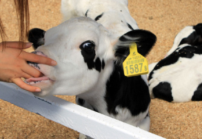 市場から買ってきた生後1週間目の子牛たち。まだ飼料が食べられないのでミルクを飲んでいます。とっても食欲旺盛で、ミルクを飲んだあとまで飼育員の指に吸い付いて離れない子も…