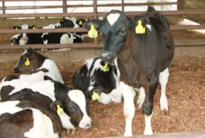 この哺育期の健康管理がもっとも重要です。この時期に肺炎になったりすると、その後の成長に影響が出るので、哺育舎はより衛生的に管理して、また気温の低い時期は温かくしたりして育てます。エサはミルクがメインで、少しずつやわらかい粗飼料と配合飼料に慣らしていきます。