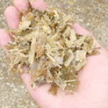 子牛がミルクの次に食べ始めるのがこの飼料。アルファルファヘイキューブ、パイン粕、乳酸菌を配合しています。