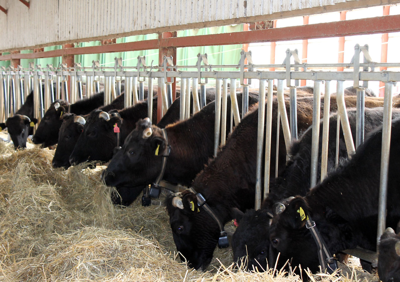 こちらの牛舎では、顔を出す間の柵が可動式になっていて、好きな場所から牛が自由に餌を食べられるようになっています。ほど良い距離間で、横の牛と邪魔にならないようになっています。ちょっとした工夫がいたる所で見られ、農業の世界も日々改良が重ねられています。
